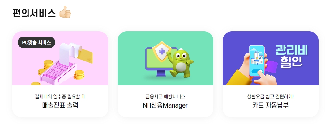 이 글에서는 농협카드 홈페이지 바로가기를 통해 로그인 없이 손쉽게 메인 화면으로 접속해 이용 내역과 결제 예정 금액을 확인하고 할인·적립 혜택, 카드 신청 과정, 포인트 조회, 자동납부 설정, 고객센터 문의, NH pay 서비스 사용 등 다양한 기능을 빠르고 간편하게 활용하는 방법을 안내합니다.