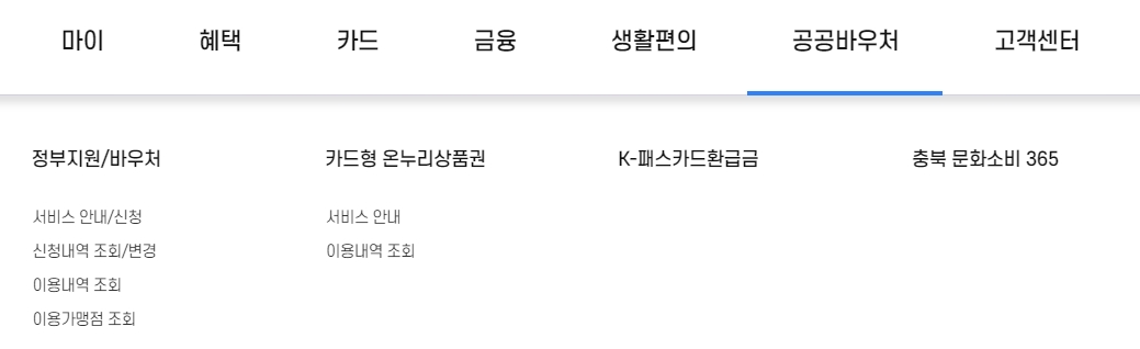 6. 공공바우처 메뉴에서는 정부 지원 바우처 정보를 확인하고 신청과 이용 내역을 관리할 수 있어요. 바우처 종류와 잔액, 사용 이력 등이 정리되어 공공 서비스 혜택을 놓치지 않고 활용할 수 있습니다.