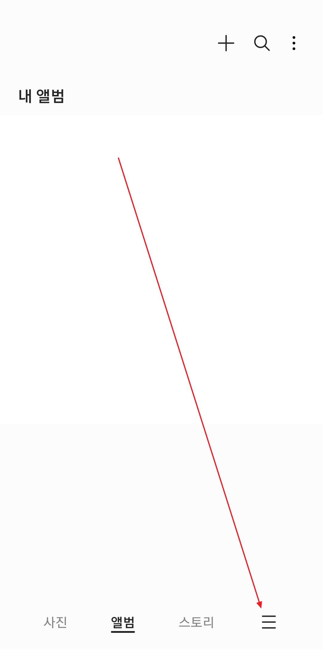 다음은 소중한 추억이 담긴 사진첩, 즉 갤러리 휴지통을 찾아볼 차례입니다. 갤러리 앱은 문자 앱이랑 메뉴 버튼 위치가 조금 달라요. 화면 오른쪽 아래를 잘 보면 가로로 줄이 세 개 그어진 모양의 버튼이 있을 거에요. 이걸 눌러주면 숨겨진 메뉴들이 나타나는데, 여기서도 똑같이 '휴지통'이라는 메뉴를 찾아서 눌러주면 된답니다. 버튼 모양만 다르지 방법은 비슷하죠?