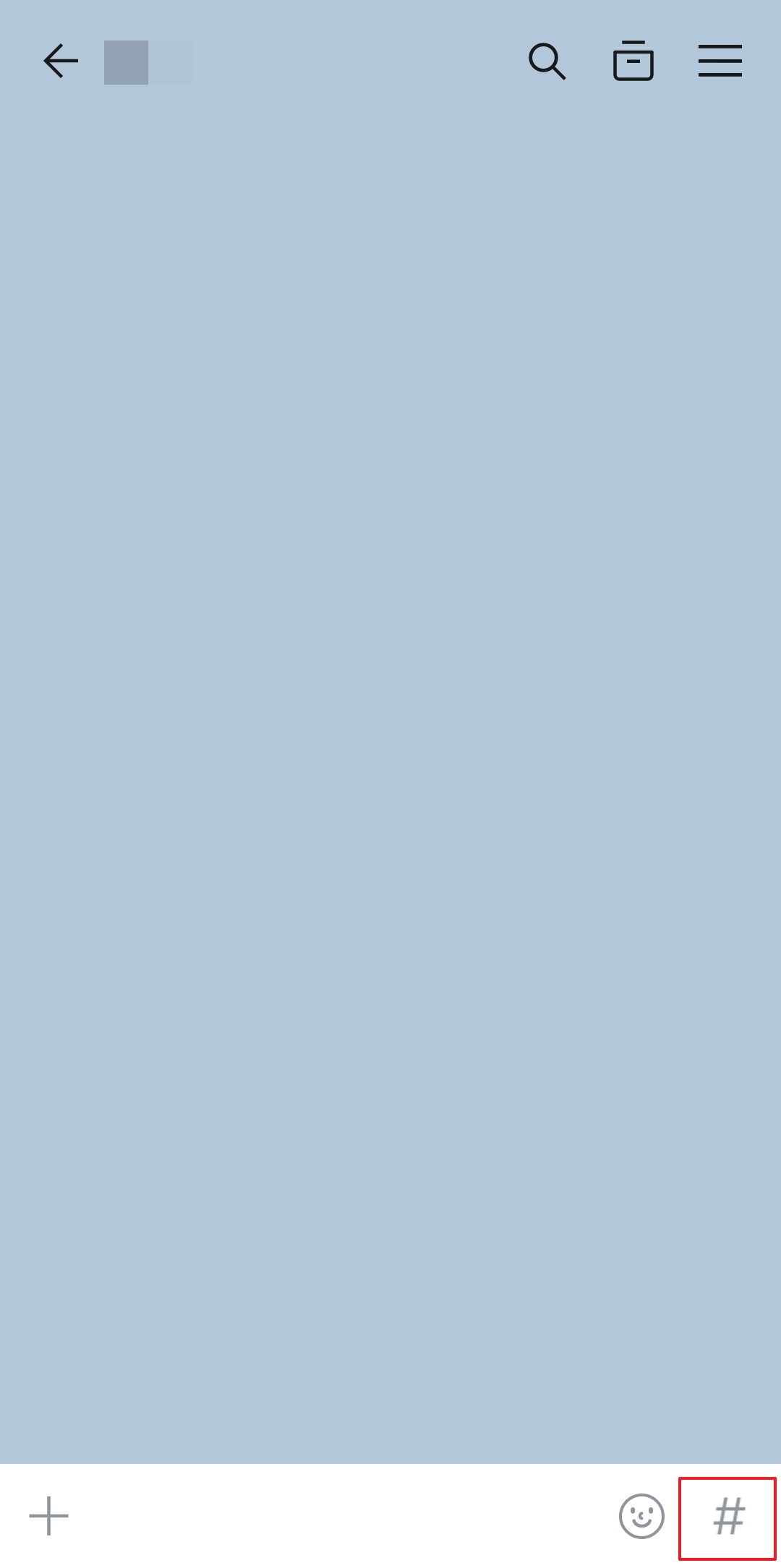 대화창에 들어오셨다면 이제 글자를 입력하는 칸 왼쪽에 있는 더하기(+) 모양 버튼을 눌러주셔야 해요. 예전에는 '#' 모양이었는데 어느 순간부터 더하기 모양으로 바뀌었더라고요. 이 버튼을 누르면 사진, 동영상, 파일 등을 보낼 수 있는 여러 가지 메뉴들이 쭉 나타나게 됩니다.