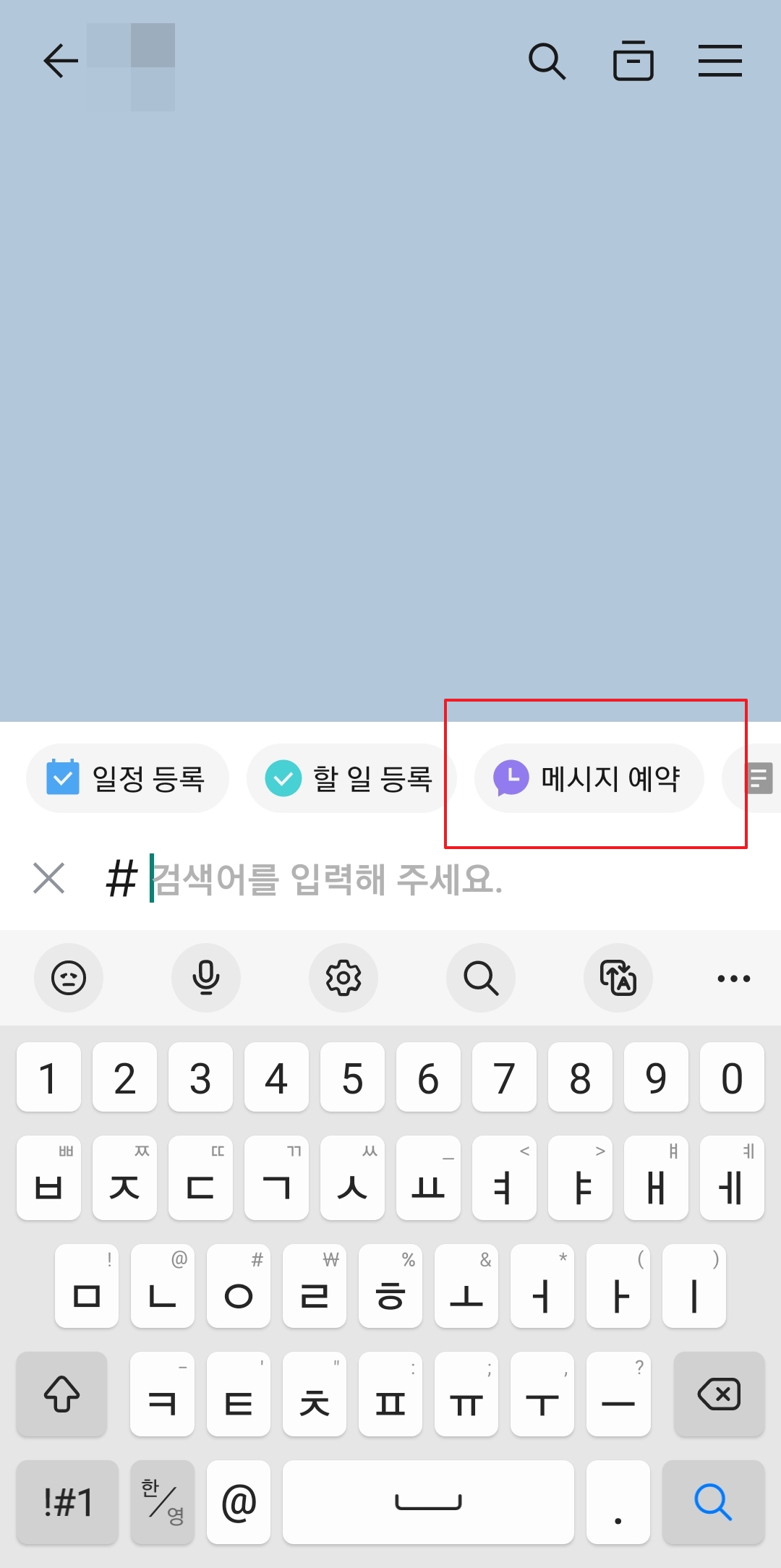 여기서 저희가 찾아야 할 것은 바로 '메시지 예약'이라는 기능입니다. 여러 기능들 사이에 숨어있어서 처음에는 잘 안 보일 수도 있는데, 천천히 찾아보시면 쉽게 발견할 수 있을 거예요. 이걸 눌러주시면 이제 본격적으로 메시지를 예약하는 화면으로 넘어가게 됩니다.