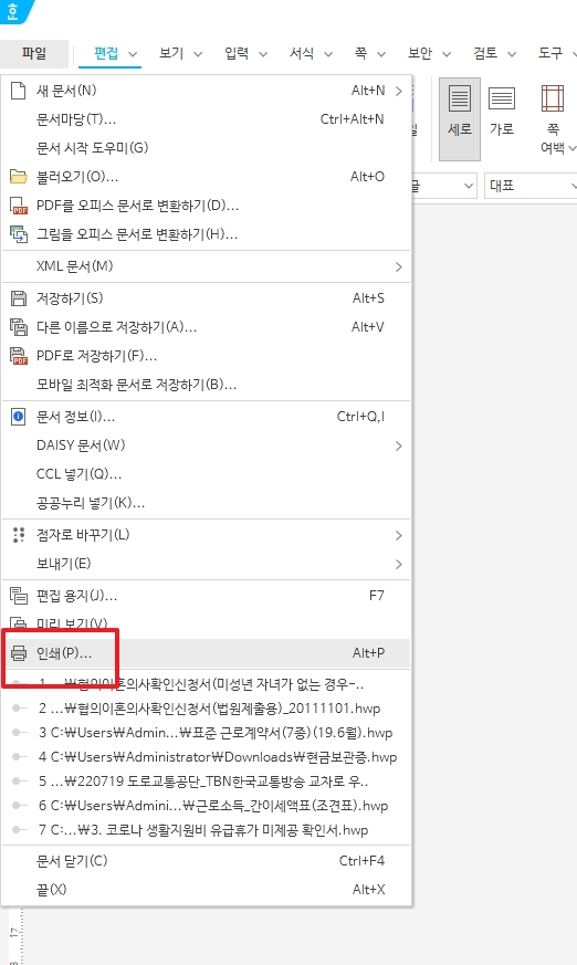한글(hwp) 파일을 pdf로 변환