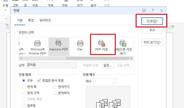 보통 프린터로 종이에 뽑을 때 쓰는 기능이지만, 이걸 이용해서 pdf 파일로도 만들 수 있어서 정말 신기하고 편한 방법이랍니다. 꼭 기억해두세요.