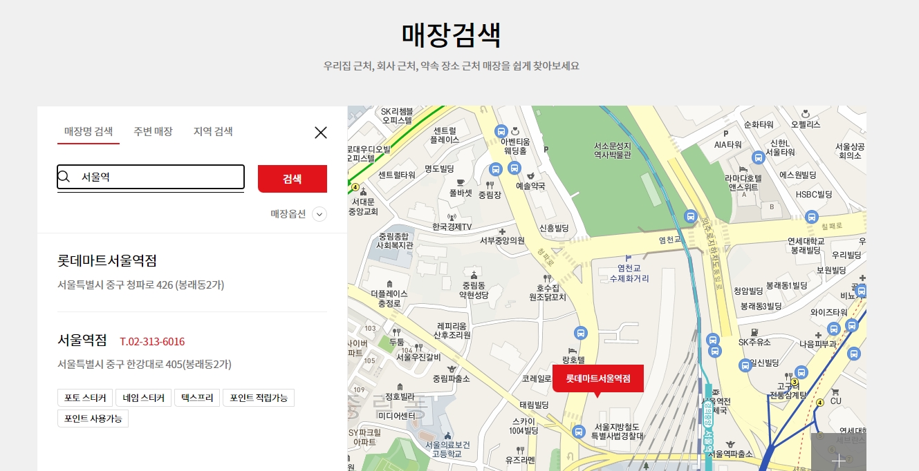 저는 예시를 보여드리기 위해서 서울역이라고 한번 검색해봤어요. 그랬더니 바로 아래에 다이소 서울역점이라는 결과가 나왔네요.