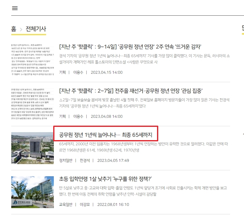 검색 결과에서는 다양한 기사들이 나타납니다. 여기서 '공무원 정년 1년씩 단계적 연장'과 같이 구체적인 계획이 언급된 제목을 선택하는 것이 현명합니다. 이는 현재 가장 유력하게 검토되는 방안을 담고 있을 가능성이 높으며, 정년 연장이 어떤 방식으로 이루어질지에 대한 힌트를 얻을 수 있습니다.